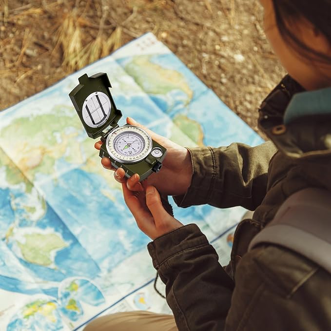 • 【PROFESSIONAL GRADE】 This professional grade military compass is the best camping survival gadgets for field trips,Waterproof and Shakeproof.Ideal.forholidaycamping,mountaineering,kayaking,climbing,adventureexpedition,outdoor wildlife,emergencies,and anywhere the beaten track takes you.