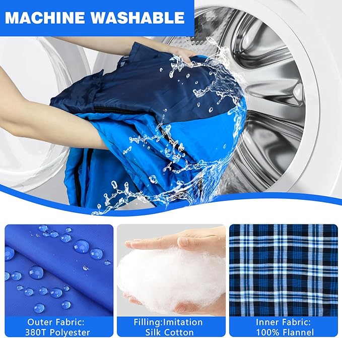 • Lightweight and portable: WKFAMOUT sleeping bag measures 78.74*32.67 inches and weighs 2.42 pounds. Ultra-lightweight backpacker sleeping bags are made of lightweight materials to ensure an extremely light overall weight. This makes it easier for backpackers to carry a lighter load when hiking, camping or climbing long distances