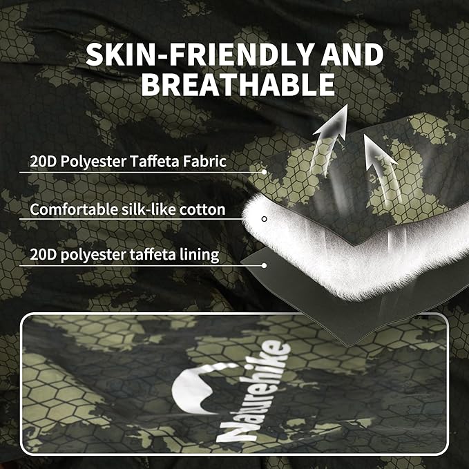 • 【IDEAL FOR BACKPACKING & TRAVEL】Unlike other bulky sleeping bags, our sleeping bag is filled with premium 80 grams per square meter imitation silk cotton to save space and allow you to sleep easily after a day of hiking, trekking, traveling or other adventures