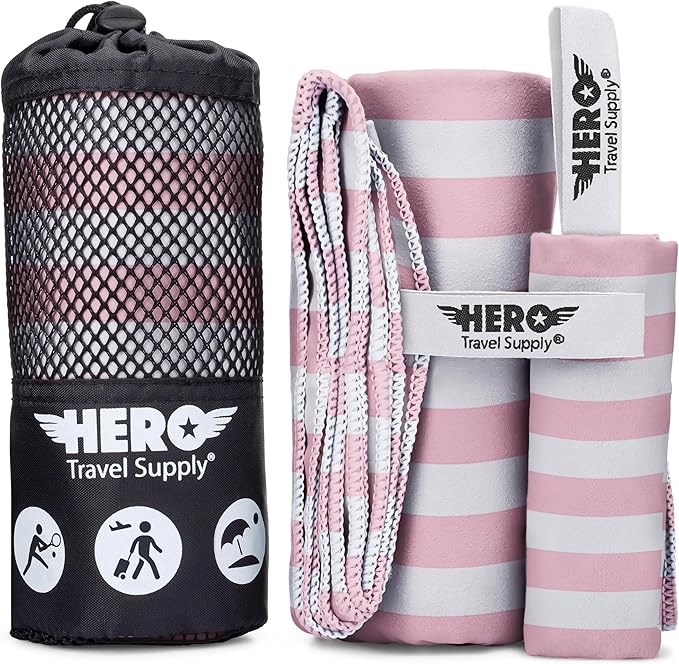 Hero Microfiber Towel for Travel, Camping, Beach, Gym – 24” X 48” (Includes Bonus Washcloth)