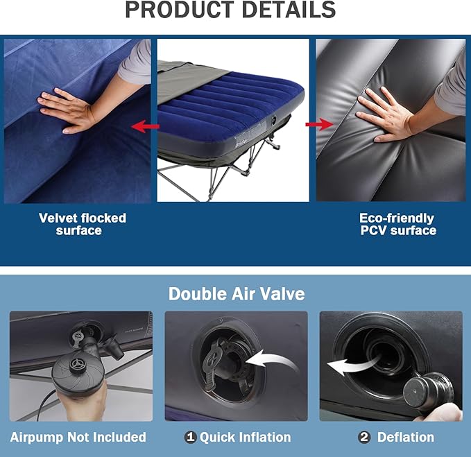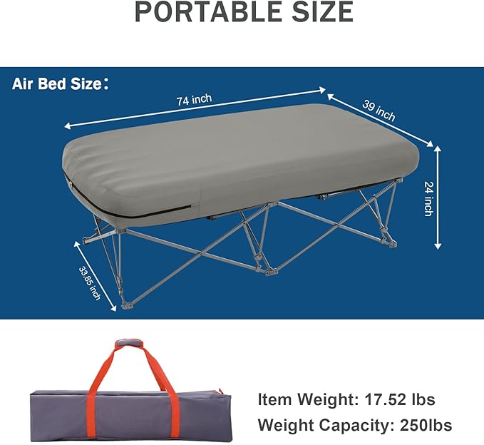 • Quick Setup: Easy to inflate and deflate,this twin size cot comes with a carrying bag for convenient storage and transport. Note: Air pump not included