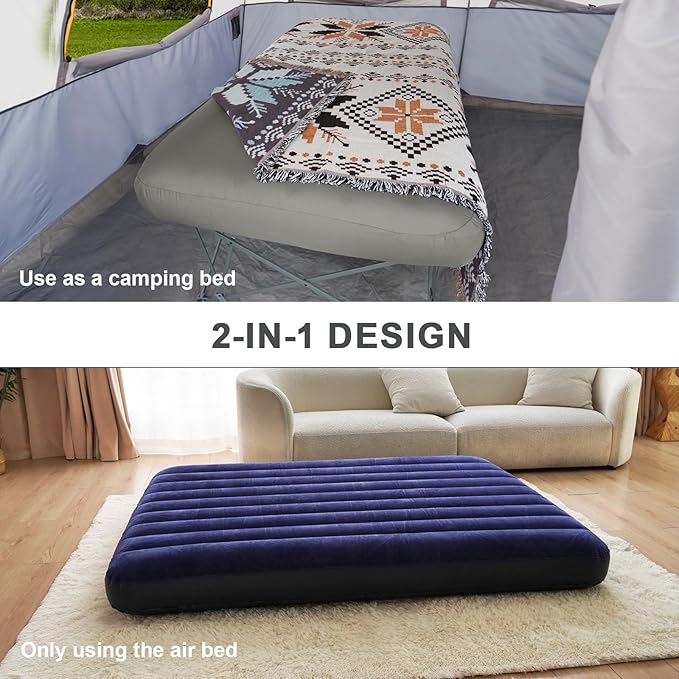 • Versatile Design: This air mattress cot can serve as a camping bed,tent bed,or standalone air mattress. It's also perfect as an extra bed for when family or friends visit overnight