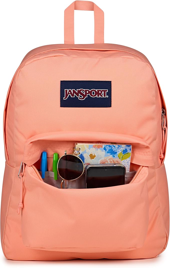 JanSport SuperBreak One Backpack - Durable, Lightweight Bookbag with 1 Main Compartment, Front Utility Pocket with Built-in Organizer - Premium Backpack, Peach Bum
