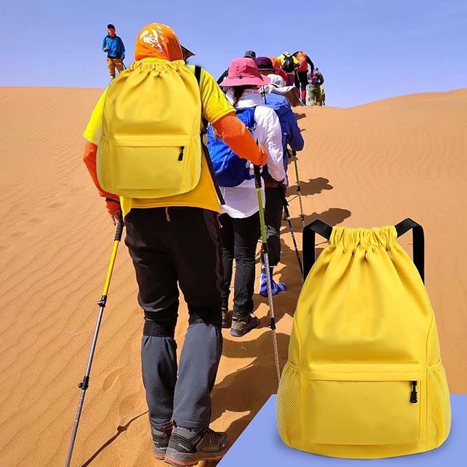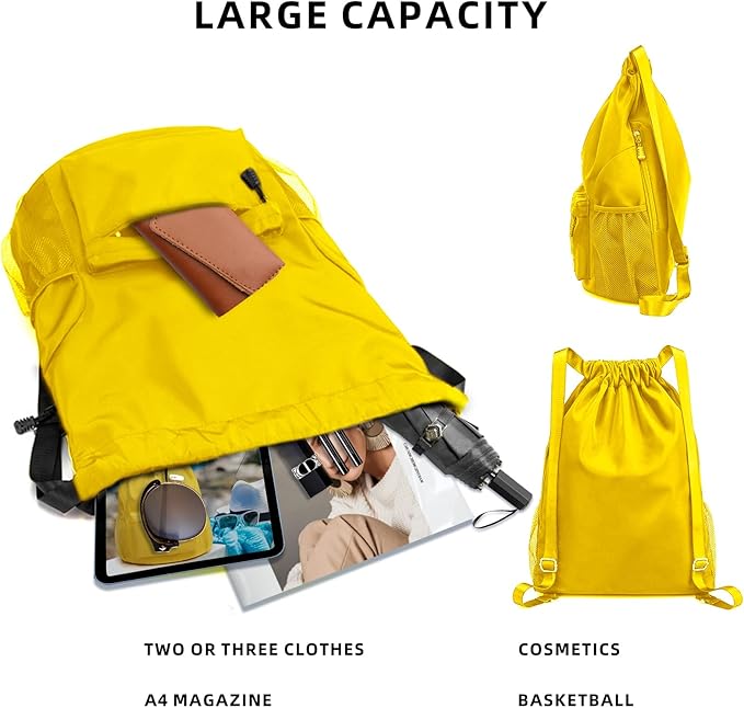 Sports Drawstring Backpack String Swimming Gym Bag Backpack with Shoes Compartment and Pocket for Men Women (Yellow-Small)