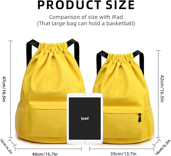 • [Larger Capacity] drawstring backpack with pockets We upgrade the size, making it can carry more daily items. A basketball can be easily put in this bag without worrying about running out of space.