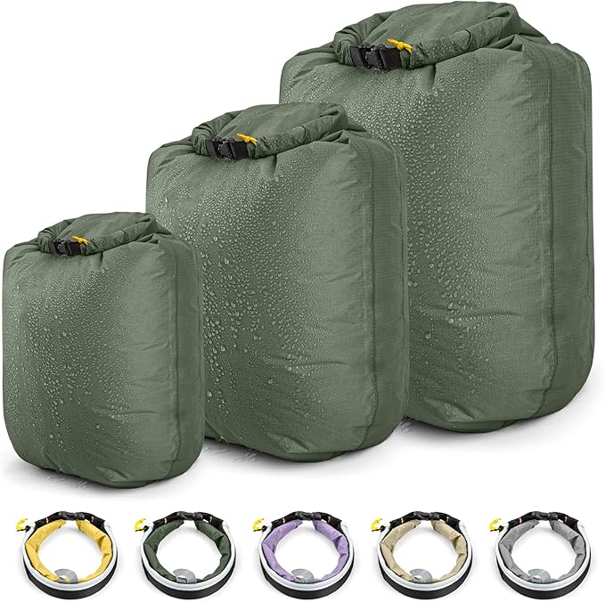 HIKEMAN Dry Bag Waterproof - Ultralight Dry Sack,Outdoor Roll Top Drybags,3-Pack Stuff Sack for Travel,Swimming,Rafting,Boating,Kayaking,Camping,Beach (Green)