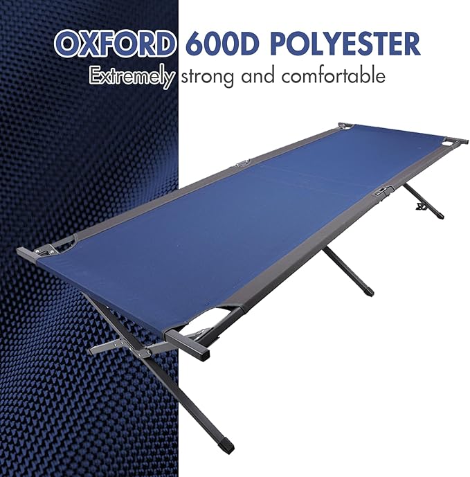 • STURDY CONSTRUCTION: Built for the outdoors, this camping bed is constructed with a powder-coated steel frame that resists rust, corrosion, and abrasion, and an oxford 600D polyester canvas. It's made to withstand the elements, making it a reliable choice for your outdoor adventures.