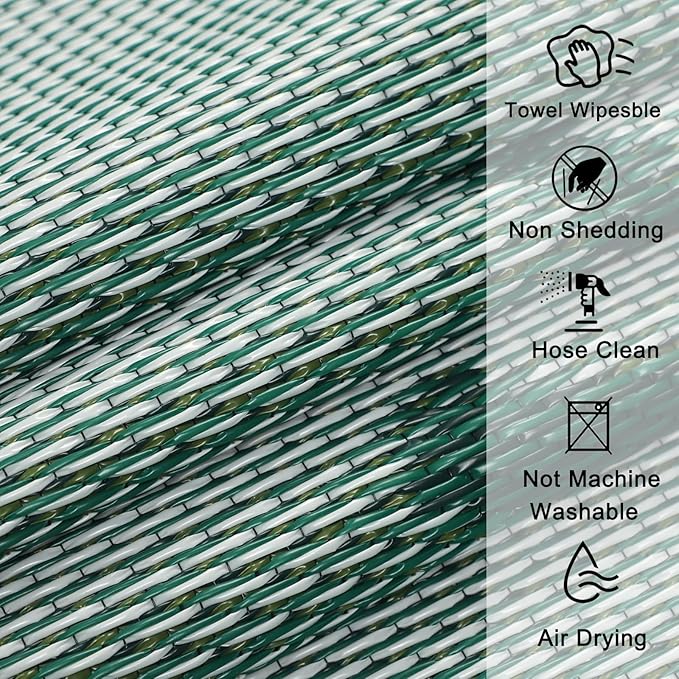 • 【Easy to Clean&Portable】The outdoor rug is easy to be cleaned, just sweep the dirt away, spray with water, hose the rug off, or use a leaf blower, then let it air dry. As for storage, the lightweight outdoor floor carpet mat is easily foldable due to its reversible design, making it portable and extremely convenient for you to store or take along during your outing and RV road trip,etc.