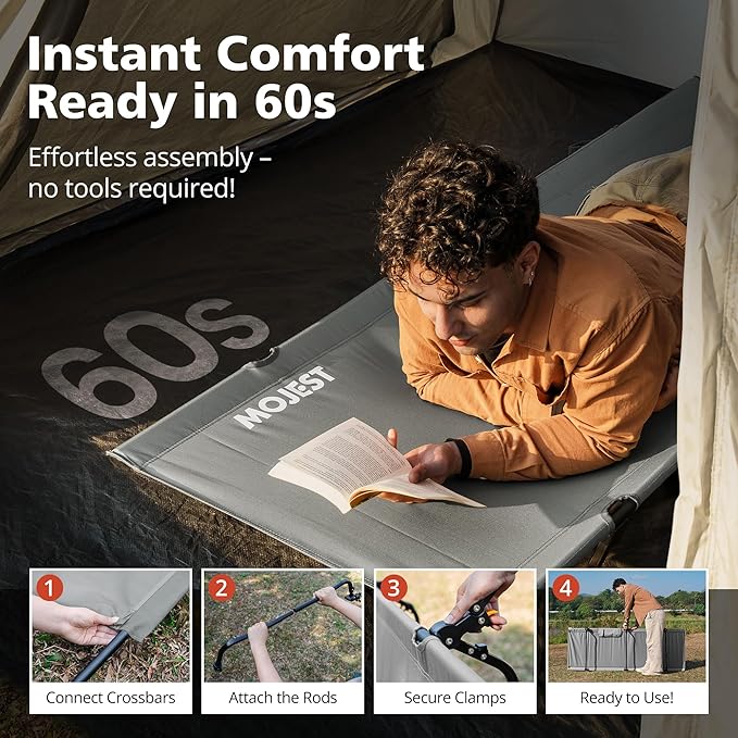 • Comfortable and Quiet Sleep – Rest peacefully on our firm camping cot with a durable Oxford fabric bed surface and an integrated pillow pocket for added comfort. Our 7-inch height design keeps you elevated, dry, and warm throughout the night