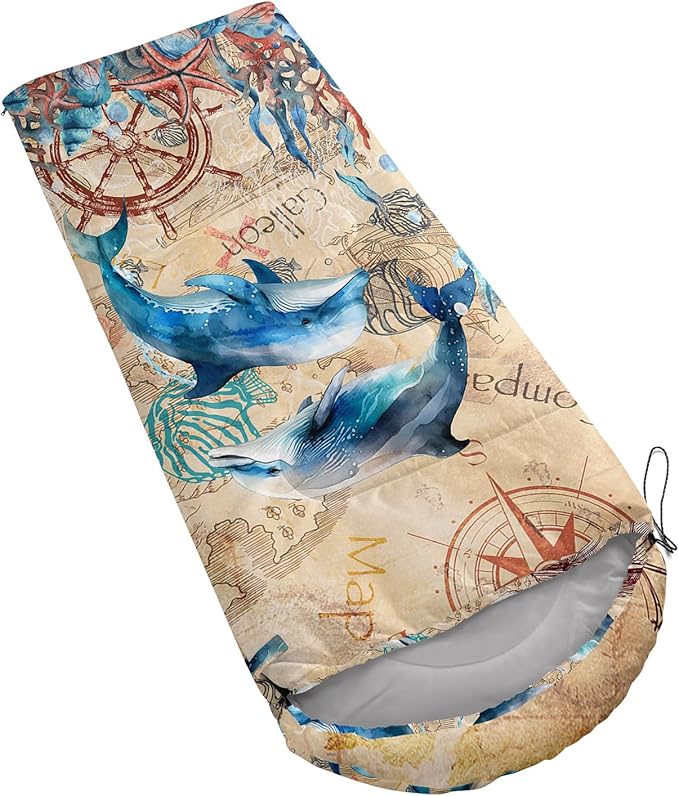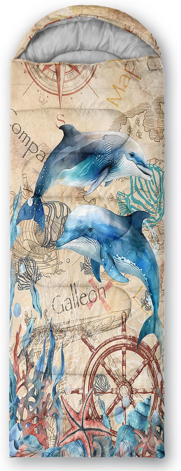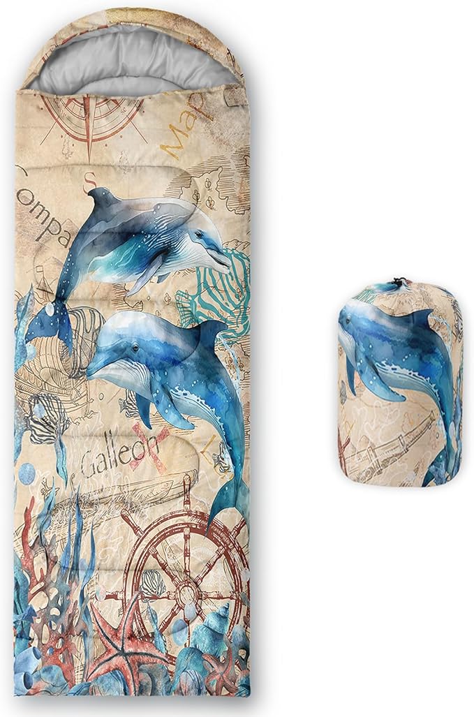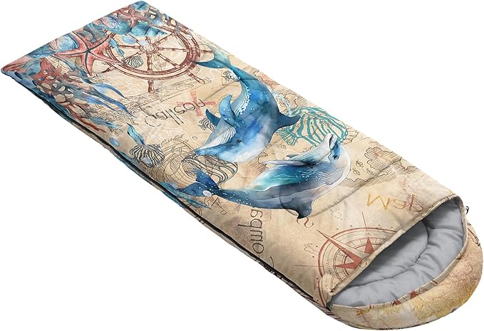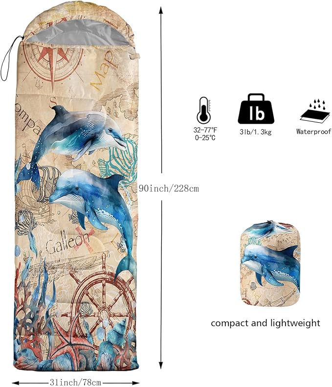 • Unique Dolphin Design:This Dolphin pattern sleeping bag is made of 3D digital printing with vibrant colors and patterns,size: 31W x 90L inches,temperature range: 32℉-77℉ (0℃-25℃),it also also have a weather resistant waterproof design to keep you warm and prevent you from any dampness,can be used in 3 seasons