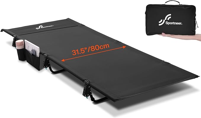 Sportneer Camping Cot: 31.5’’ Extra Wide Compact Sleeping Cots with Side Pocket - Lightweight Folding Cot for Camping Traveling Tent Day, Carry Bag Included, Easy Setup - Size 74.8''x31.5''