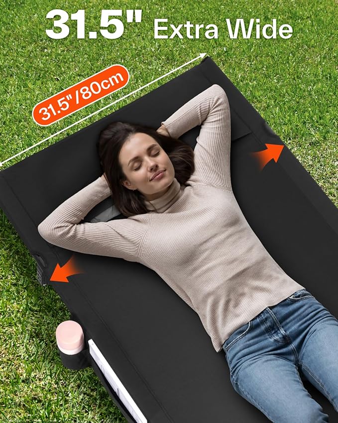• 31.5" Extra-Wide Design for Enhanced Comfort: This camping cot features a 31.5-inch extra-wide surface and a taut, flat design, offering ample space and stable support for you to stretch out and enjoy a more comfortable sleep. Ideal for outdoor camping, hiking, road trips, and mountaineering, it also serves as a convenient indoor nap bed, emergency folding bed, or guest bed, adapting to various situations and needs.