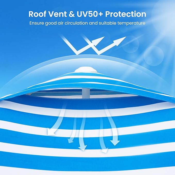 • 【Enhanced Stability & Ventilation】Beach cabana umbrella has air vents on top,Inot only keeps the air flowing but also helps the balance of the beach umbrella.Privacy Sidewall is removable, you can choose whether to install it according to your needs.