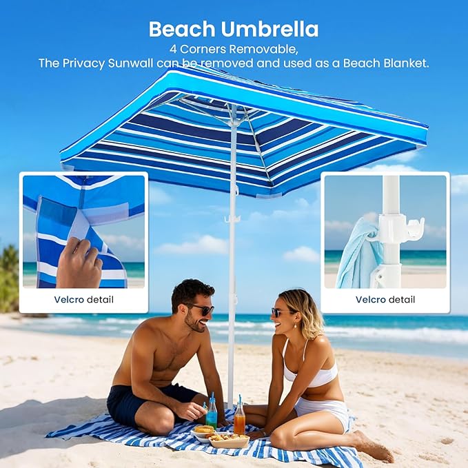 • 【Modular Design for Versatility】Customize your setup effortlessly! Detach corners to use as a standalone umbrella or remove sidewalls for an open seating space. Flexibility tailored to your beach day needs.Great choice for family, couple, friends beach vacation!
