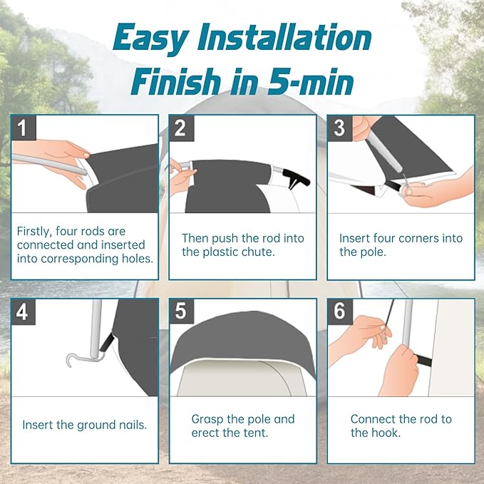 • [5-Minute Easy Setup]: Pre-attached poles joints allow quick assembly (incl. 4 guy ropes & 8 stakes),Crosship portable shower tent for camping with visual instructions for all users.