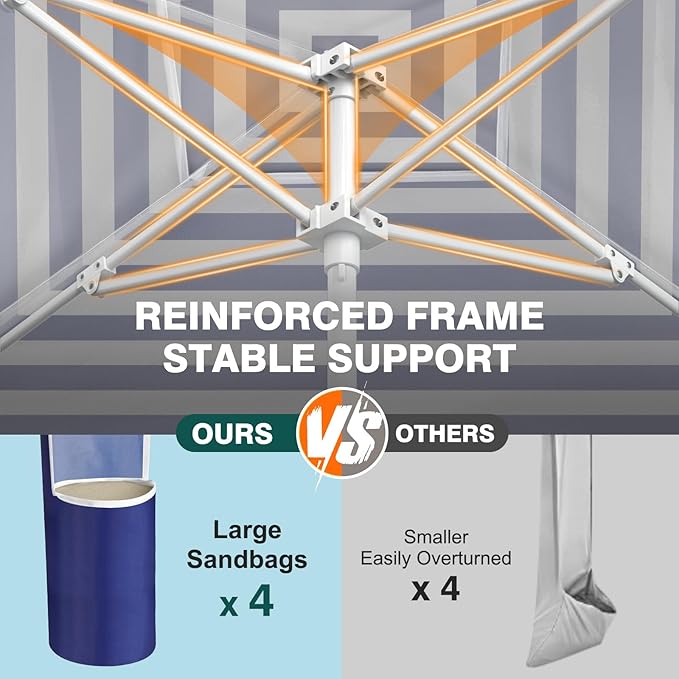 • Thickened and Reinforced Support: Our thickened support poles of beach cabana feature 1.4mm/0.05in thickness, which has more stability compared to the 1mm/0.04in of most ordinary beach tents. The metal poles are stronger and more sturdy than regular fibreglass ones to withstand strong winds.