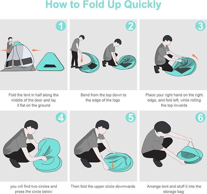 • Lightweight & Easy to Fold: Weighing only 3.79 lbs, this tent is 25% lighter than similar models, making it incredibly portable and easy to carry in its compact storage bag. With clear instructions and step-by-step video tutorials, folding and packing the tent is stress-free, solving the biggest frustration of pop-up tents