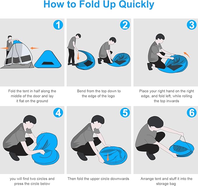 • Lightweight & Easy to Fold: Weighing only 3.79 lbs, this tent is 25% lighter than similar models, making it incredibly portable and easy to carry in its compact storage bag. With clear instructions and step-by-step video tutorials, folding and packing the tent is stress-free, solving the biggest frustration of pop-up tents