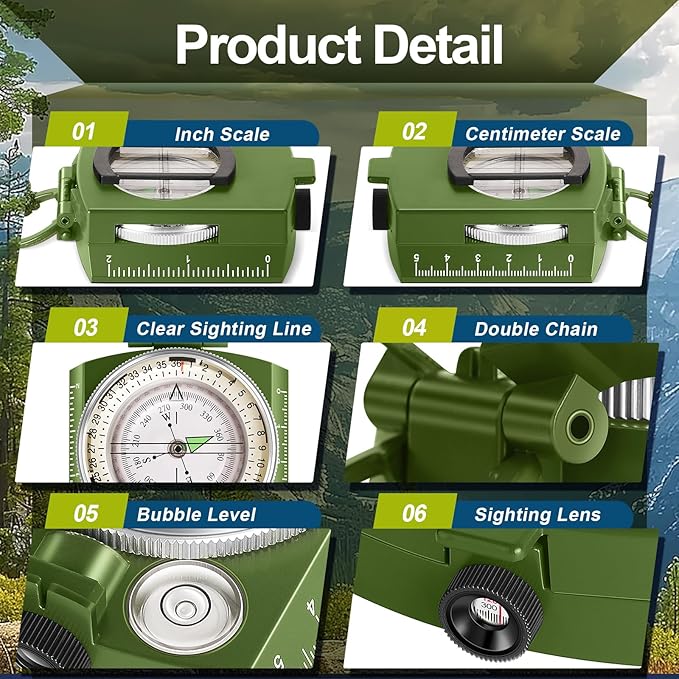 • Durable & Weatherproof: The orienteering compass adopts a small and sturdy metal body to withstand harsh conditions. The survival compass is not afraid of wind and rain and is durable. The hiking compass accompanies your outdoor travel
