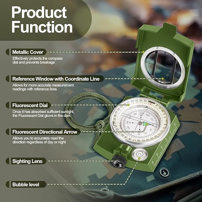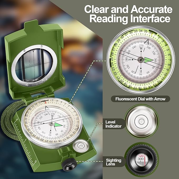• Professional Grade: Military compass can always lead you to the right direction for your wilderness hiking, the compass hiking survival perspective compass is perfect for mountaineering, outdoor camping, backpacking, emergency and anywhere where there are few people
