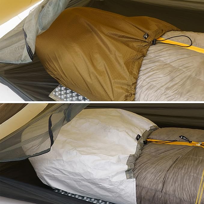• 【Waterproof Material】: The sleeping bag feet waterproof cover are made of waterproof material. Nylon Blend Fabrics has waterproof and tear-resistant properties, while the Tyvek Fabrics has waterproof and lightweight properties, are very suitable for camping in the sleeping bag, to protect the bottom of the sleeping bag, waterproof warm effect.