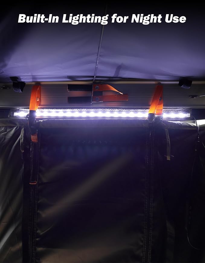 • Built-In Lighting for Night Use: Featuring an integrated light strip that can be easily inserted into tracks, this shower tent guarantees a well-lit space even at night, perfect for nighttime showers or as an illuminated changing room