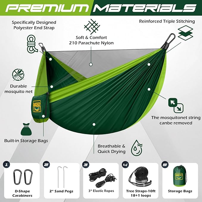 • Eco-Friendly Materials & Comfortable Experience:Made with non-toxic, eco-friendly materials that meet US environmental standards,this mosquito net for hammock is designed for breathability and soft-touch comfort. Its spacious design accommodates two people or a small family, offering an ergonomic and ultra-relaxing experience for your outdoor adventures