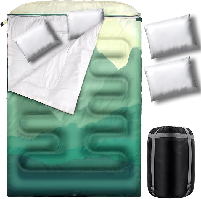 Double Sleeping Bag for Adults with Pillow Queen Size Waterproof Two Person Sleeping Bag for Outdoor Camping Hiking Backpacking All Season Cold Warm Weather