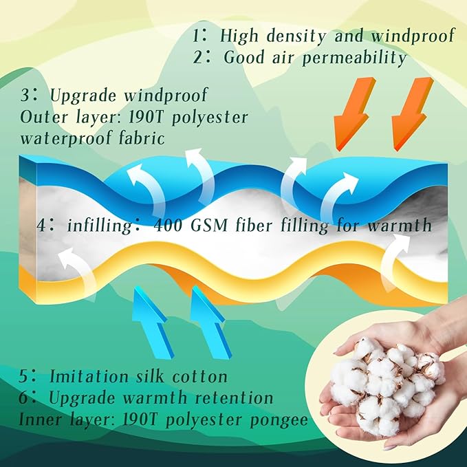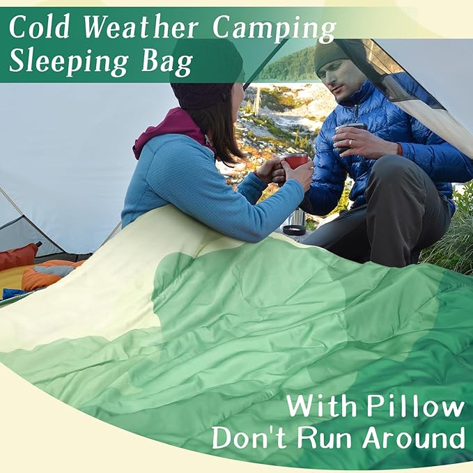 • Thermal Design: our camping sleeping bag features a double layer structure and 400 GSM fiber filling for warmth;The contoured 3D hood design with drawcord allows for internal adjustment to prevent heat loss