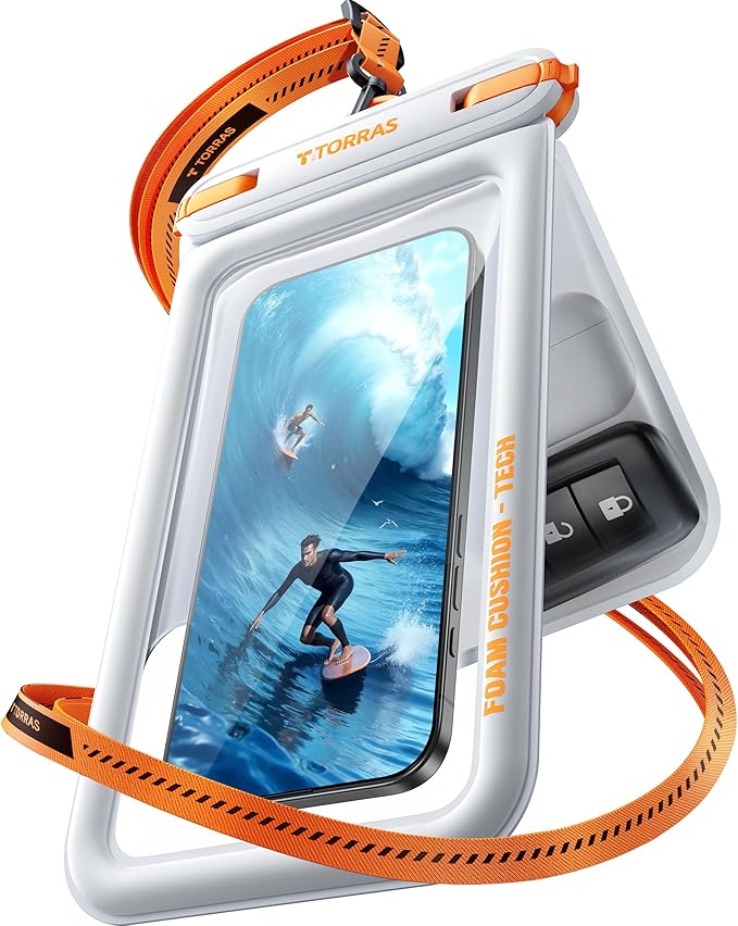 • Safe Floating, Adjustable Lanyard: Features an exclusive "FOAM CUSHION-TECH" floating layer, which provides an amazing buoyancy of up to 500g, improves by 80% compared to others. Even if your phone accidentally drops into the water, it will quickly float up, allowing you to easily locate and retrieve it. Plus, it has an adjustable and eye-catching lanyard, which is comfortable to wear around your neck. Ideal for beach vacations, swimming, kayaking, cruise trips, and various outdoor activities