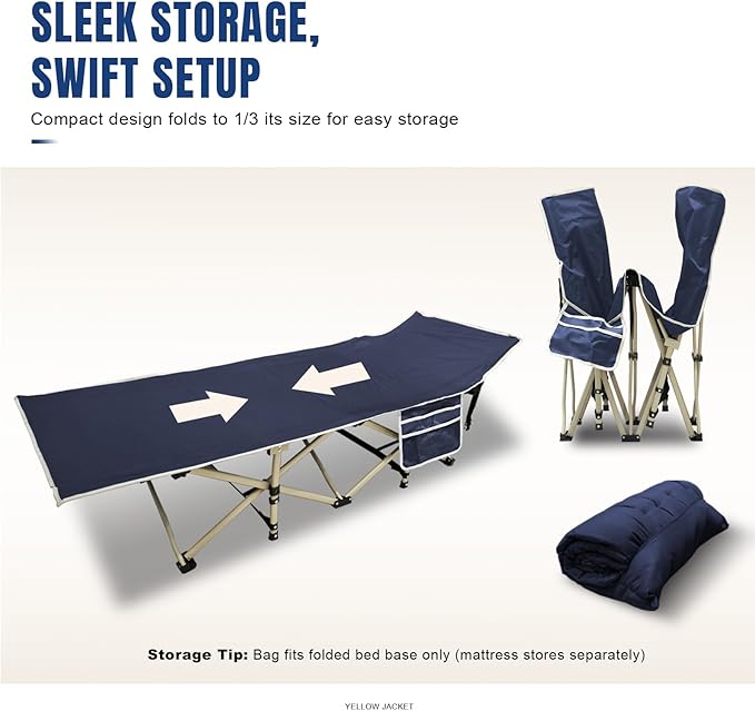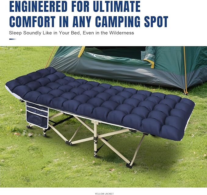 YELLOW JACKET Camping Cot with Mattress for Adults, Folding Sleeping Cot 600lbs Max Load, Portable Camping Cot with Carry Bag, 28" Wide Cot for Camping, Home,Office,Travel (Blue)
