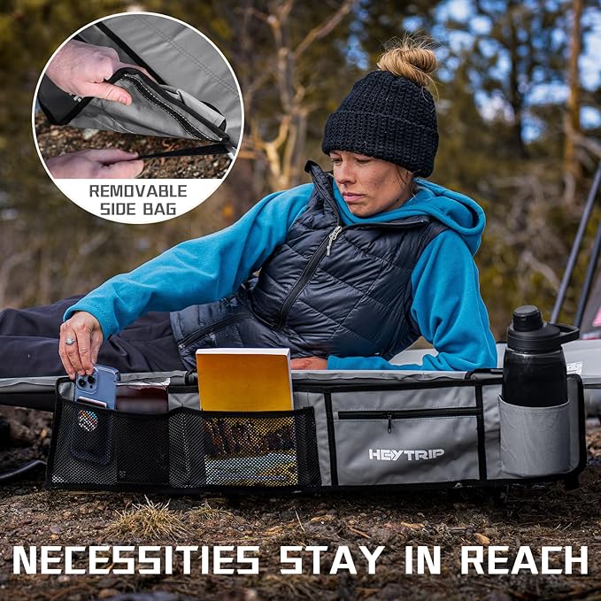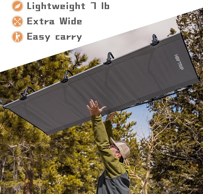 • Heytrip camping cot: Not just for car camping, take it fishing, to the beach, on a hiking and road tripping is a breeze with this backpacking cot. Bring it inside for a quick office nap or as a guest bed for family gatherings. With enough space for adults, kids or pets. Upgrade to Heytrip and experience the ultimate in versatility.