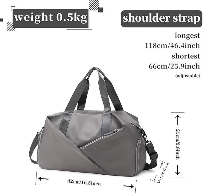 • Perfectly Sized & Versatile : Duffle bag for women and men, The size of this travel bag is 16.5"x9.8"x9.4", ideal as a carry on bag. With additional adjustable shoulder strap, the gym bag can be carried with you everywhere,use it for various activities, and sports such as tennis, dance, golf, football, crossfit, and swimming.