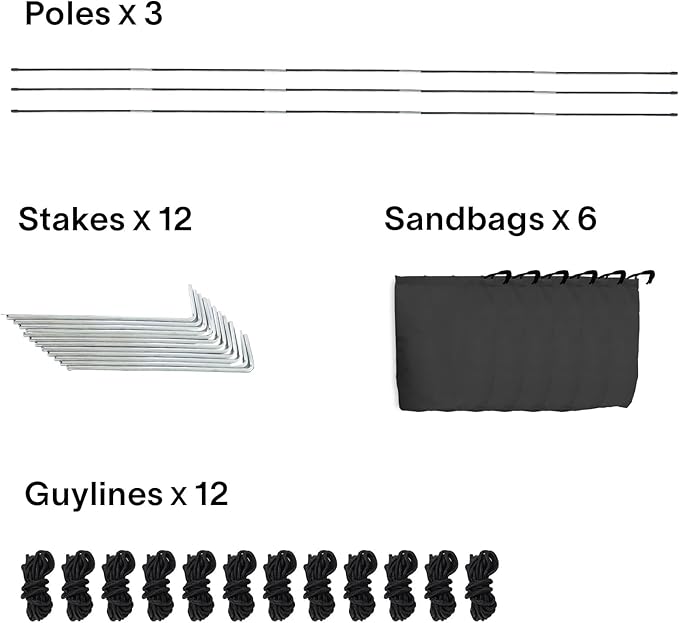 • Steadfast Stability: Worried about windy conditions? Rest easy with the included 6 elongated sandbags, 12 guylines, and 12 metal mounting stakes. These essential accessories ensure your tent remains steadfast in diverse weather conditions, so you can focus on enjoying the great outdoors. Floor (ASIN B07P2D24N6) is optional purchase choice, it can be a floor for this outdoor tent. Our String Lights LED (B08CRD646V) is ideal for adding some sparkle to this tent.